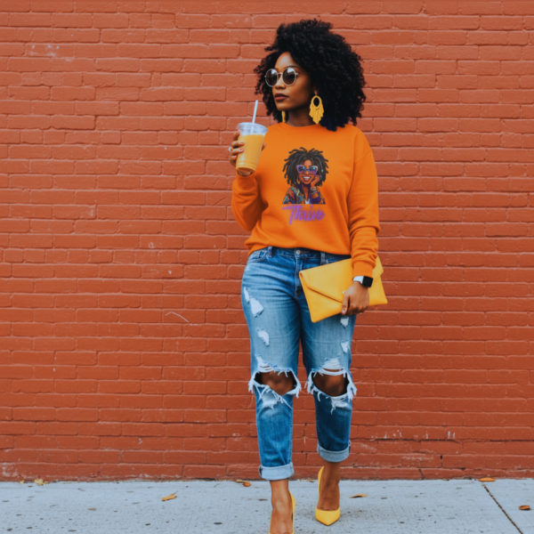 Soft, confident, and rooted — this sweatshirt celebrates Black women’s strength with Afrocentric design and everyday comfort. The medium-heavy 50/50 cotton-poly blend feels substantial without being stiff, and the classic crew neckline and clean cut let the embroidery speak. Wear it on cool mornings heading to a market, layered for a community meet-up, or while journaling at home. The embroidered motifs nod to heritage and resilience; they sit proudly on the chest or wrists, catching the eye without shouting. Each piece is ethically made, color-safe, and built to last — a cozy companion that moves through life with grace and purpose.
